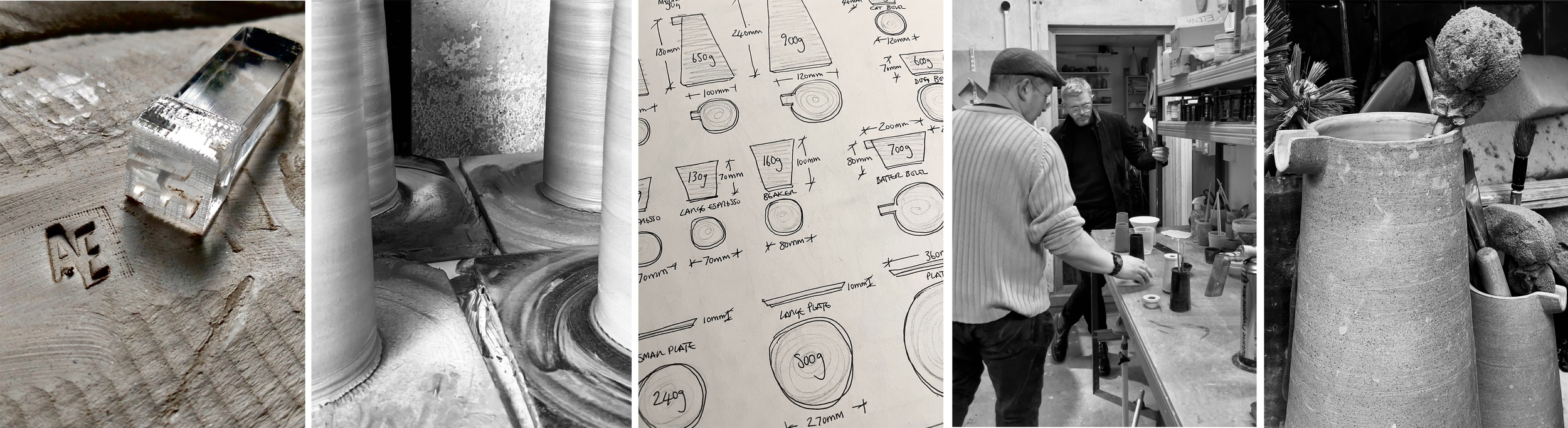 I got hooked on pottery when I studied A level art and craft at Boston college in Lincolnshire. I had a studio all to myself for two years and was able to spend time just enjoying playing with clay. I went on to do a teaching degree at The University of Gloucestershire, meeting people who were to be a great influence on me later, namely Mick Casson and Jerry Fryman. After teaching for three years I met Mike Goddard and started throwing pots in my conservatory at home. Things gradually expanded to a studio in Little Bentley, and then shrunk down again to fit in the studio in our back garden.