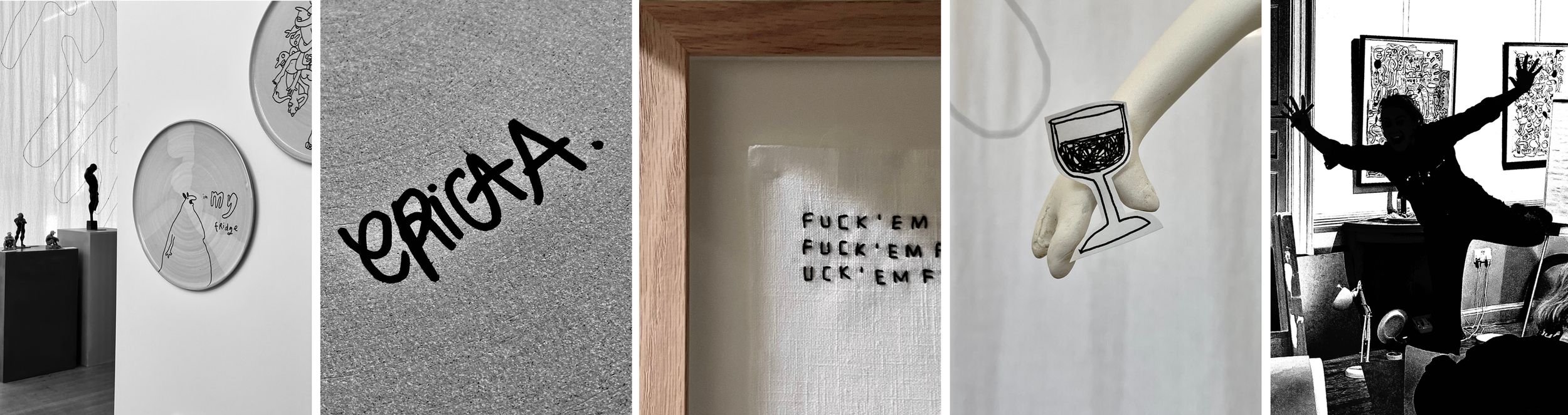 Under the umbrella term ‘artist’ Erica can work in various fields like embroidery, drawing, sculpting, murals, animation etc, dodging any pigeonholing. Maybe ‘visual entertainer’ describes her best?